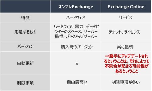 Exchangeを使う際に、オンプレミスExchangeとExchange Onlineどちらを使うか迷うことがあるかと思います。 本記事では、それぞれの違いをご説明します。 オンプレミスExchangeとExchange Onlineの違い メールボックスの容量 メールボックスの作成方法 さいご…