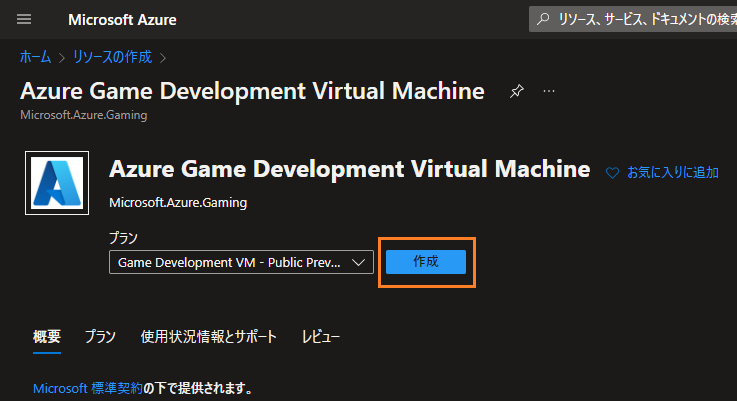 - azure portalにログインし、Azure Game Development Virtual Machineを検索します。