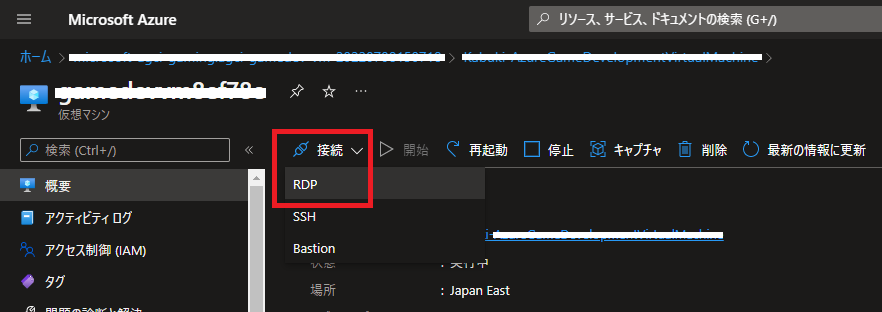 - デプロイが完了したら、仮想マシンへRDPで接続します。