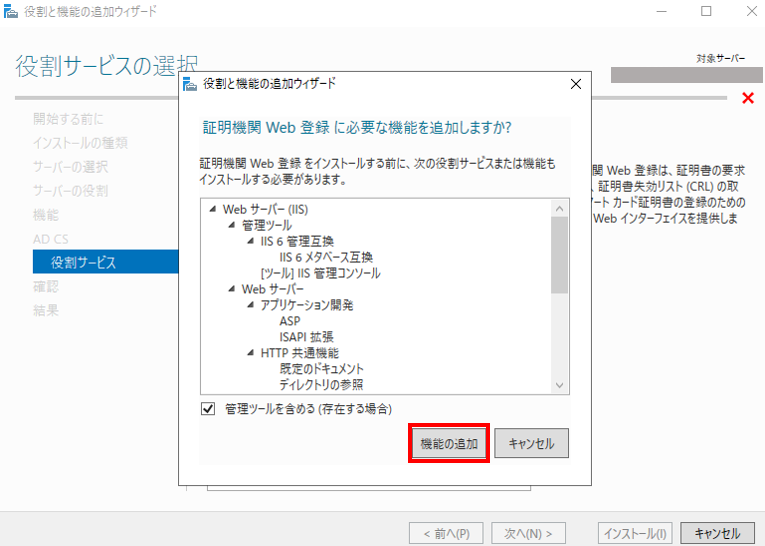 ADCS 役割と機能の追加