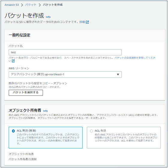 | オブジェクト所有者 | ACL無効(推奨) | ACL無効(推奨) |