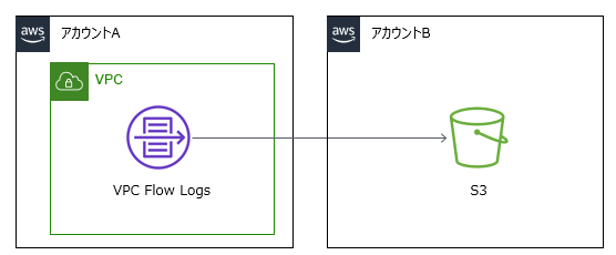 - アカウントB=VPC Flow Logs格納するAmazon S3配置アカウント