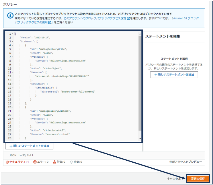 以上でAmazon S3バケットポリシーの作成が完了です。