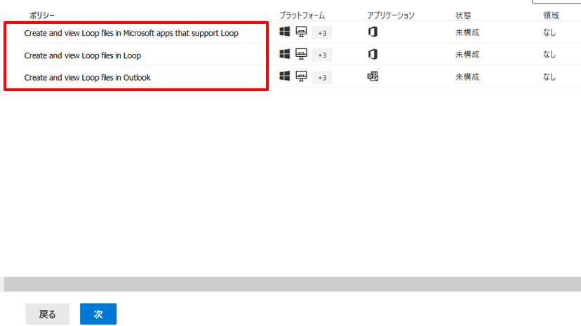6.ポリシー画面で、検索欄に「Loop」と入力し、