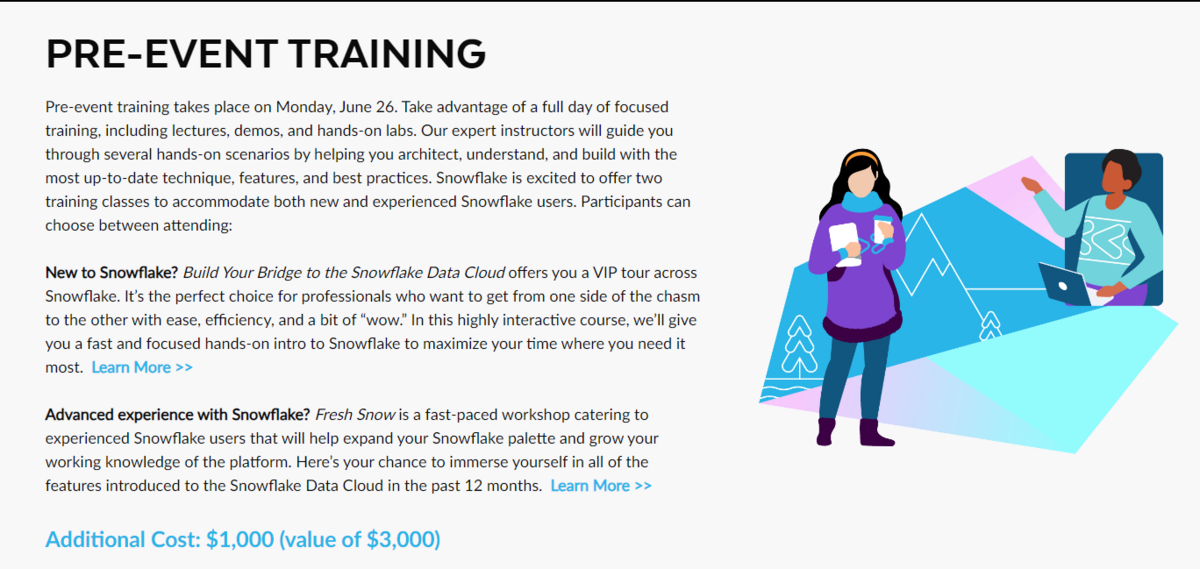 ここで今回Snowflakeが提供しているサミットプレイベントトレーニングについて補足です。自分が確認した時点では2種類ありました。