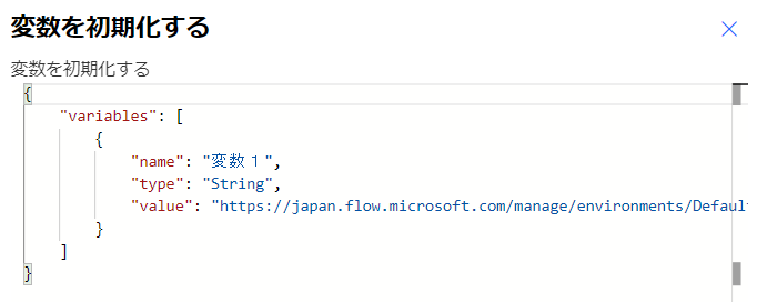今回は変数にURLを格納する形とし、あらかじめエラーが発生するように適当なアクションを追加しました。