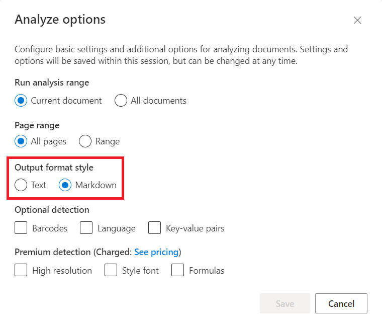 JSONデータはDocument IntelligenceのLayoutを使用して、マークダウン形式で出力させました。
