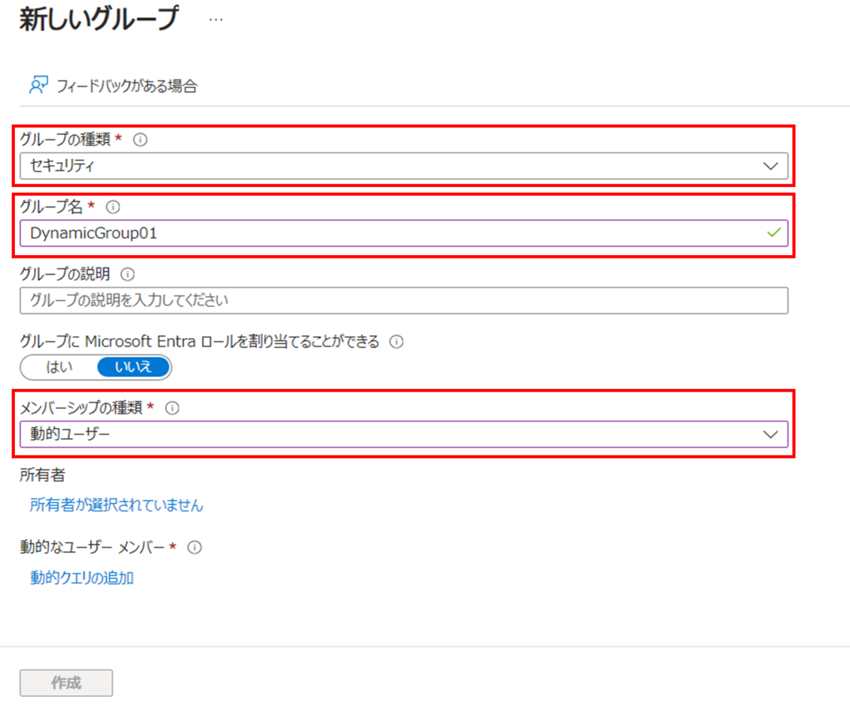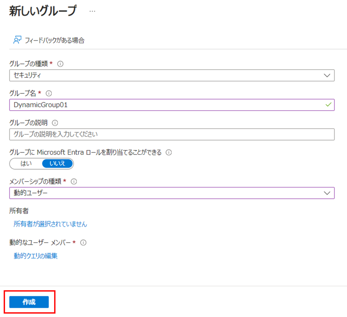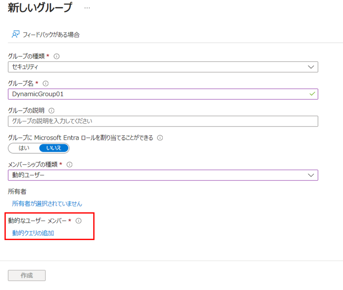 動的グループの構成が可能なグループは、セキュリティグループとMicrosoft 365グループです。