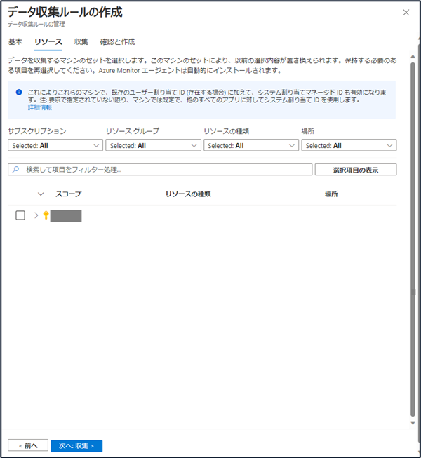 - 「+データ収集ルールの作成」にて、「作成」を選択します。