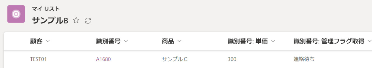 サンプルBの参照列で「ソース リストから列を追加」に「管理フラグ取得」が候補として表示されるようになります。