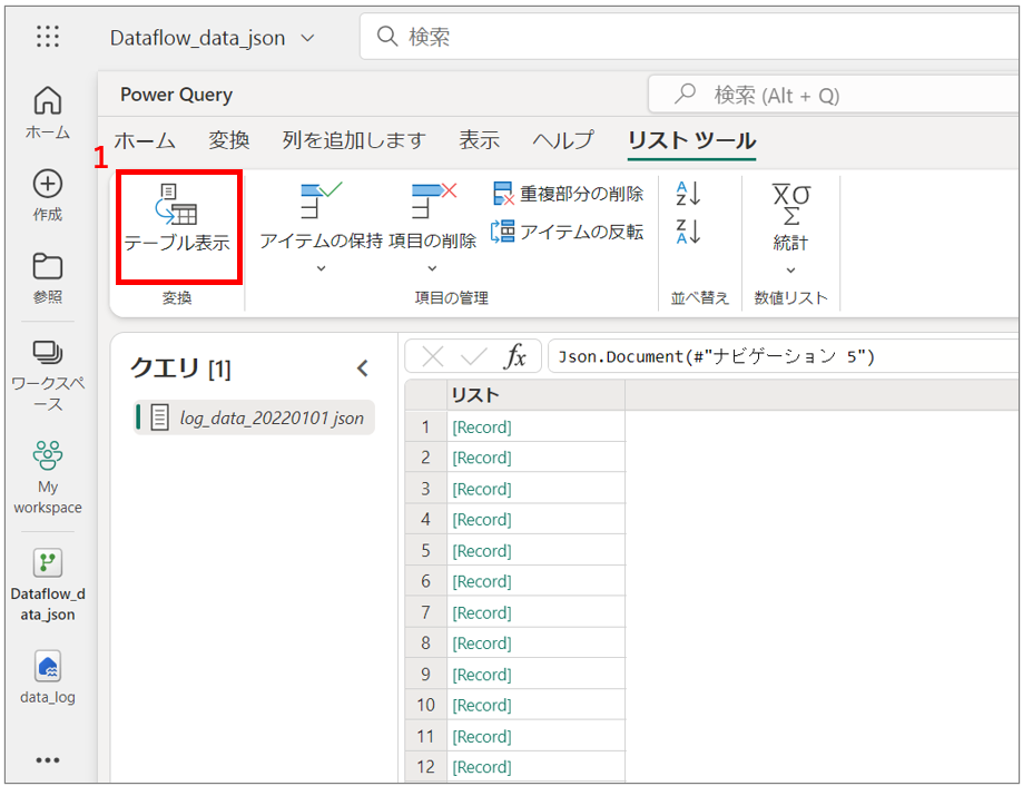 5.JSONファイルがテーブルに変換されたことを確認します。