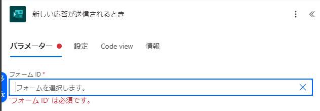 Power AutomateでFormsを利用する際は、どのフォームをトリガーやアクションで利用するのかを指定する必要があります。