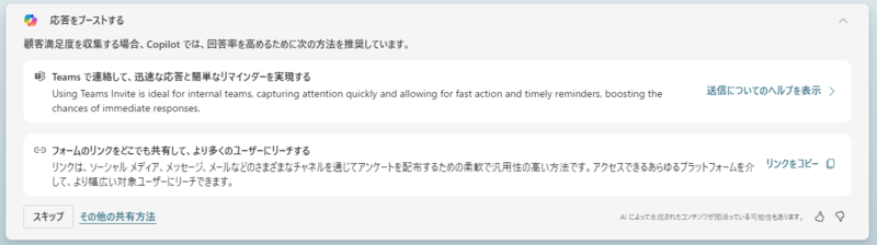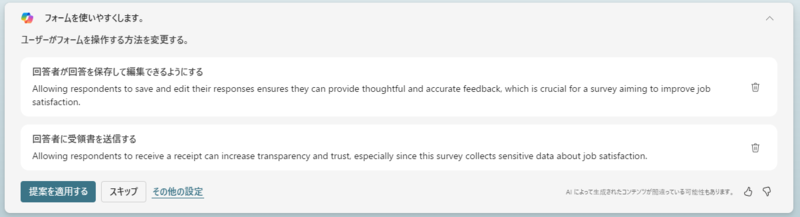 質問の編集だけではなく、Copilotはフォームを改善する方法に対しても提案してくれます。