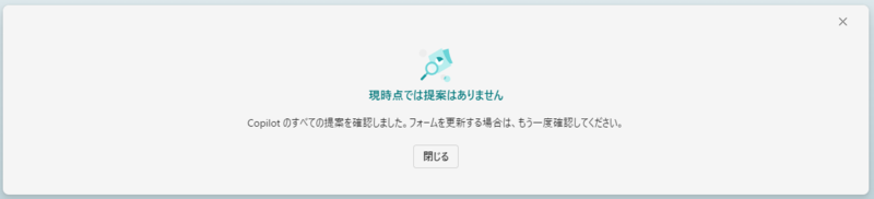 フォームに対する提案が特にない場合は、以下のようなメッセージが表示されます。