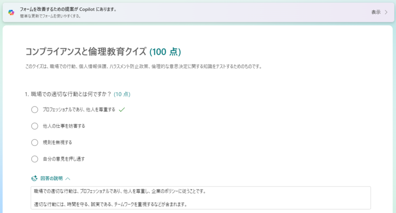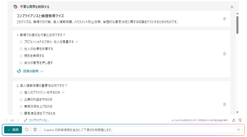 Copilotが質問・問題やその文章まで生成してくれたことで結構時間短縮ができたので、ぜひ使用してみてください。