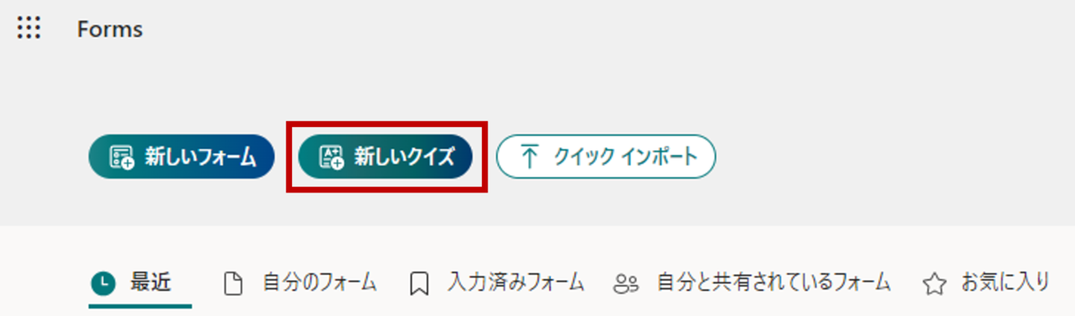 新しいクイズを作成するために、フォームのメインから「新しいクイズ」をクリックします。