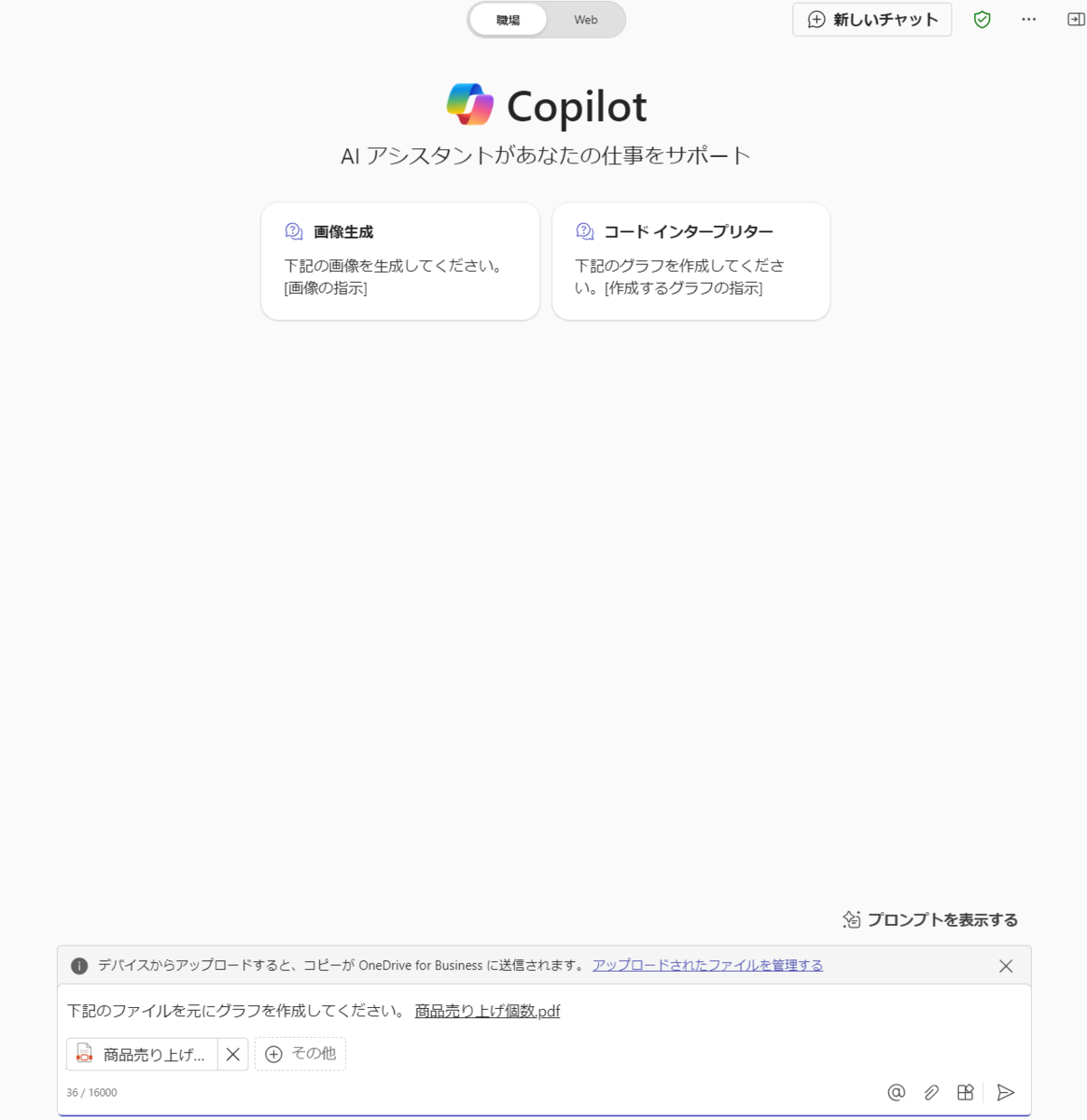 次は、PDFを参照してグラフを作成するよう依頼します。