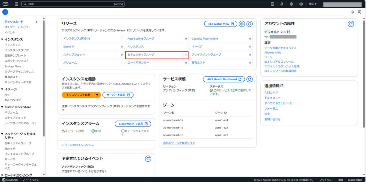 - 利用するリージョンは東京リージョン(ap-northeast-1)とする