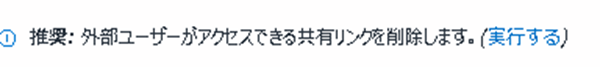 フォルダーやファイルに設定している共有リンクの一覧を確認できます。アクセス権の取り消しや推奨アクションの選択が行えます。