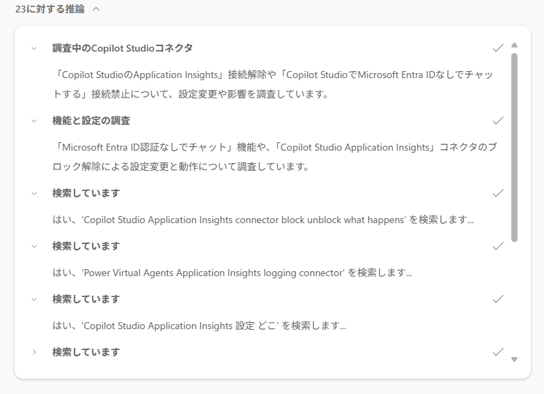 高度な質問を行うと、まず質問内容に対して自動で推論を行います。
