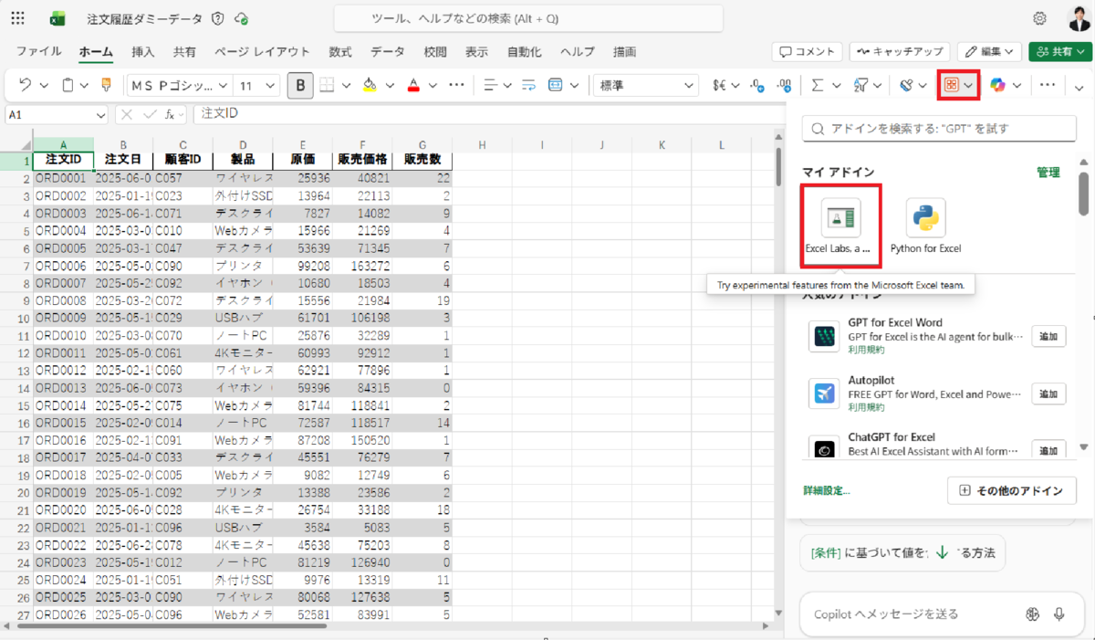| 正式な資料に使うグラフを作成したい | Excel Labs(Copilot in Excel) |